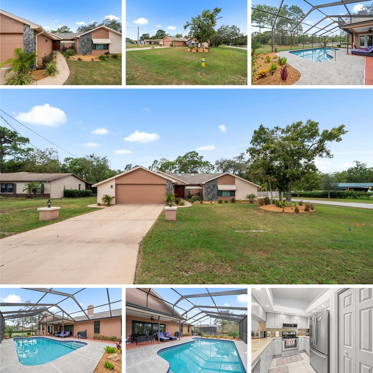 Stunning Updated Pool Home on a Quarter-Acre Corner Lot in Sought-After Spring Hill! Welcome to your dream oasis! This wonderfully updated pool home is perfectly situated on a spacious quarter-acre corner parcel in the desirable community of Spring Hill. With its elegant design and modern amenities, this residence offers a perfect blend of comfort and sophistication. As you approach, you’ll be greeted by an elongated, columned driveway that sets the tone for the grandeur that awaits inside. The lush landscaping enhances the home’s curb appeal, inviting you to explore further. Step into the heart of the home—a stunning kitchen that is sure to impress. Featuring stainless steel Whirlpool appliances, recessed and skylighting, oversized tiles, and beautiful Corian countertops with a tiled backsplash, this kitchen is both functional and stylish. It’s the perfect space for culinary creations and entertaining guests. The immense, sunken family room is a true highlight, showcasing a double-sided, tile-faced wood-burning fireplace that adds warmth and charm. Plush carpeting, cathedral ceilings with wood beam accents, and built-in shelving create an inviting atmosphere. Enjoy surround sound for your entertainment needs, and newer quad sliders that seamlessly connect the indoor and outdoor spaces, leading to the covered pool deck. Step outside to discover your private paradise! The gleaming pool, featuring a Diamond Brite finish, overlooks the lush, landscaped grounds, providing a serene backdrop for relaxation and outdoor gatherings. The covered pool deck is perfect for entertaining or enjoying quiet evenings under the stars. The vast formal dining area is adorned with bay windows and dual French door exits to the pool, creating an elegant space for family meals and celebrations. The stunning master bedroom offers plush carpeting, vaulted wood beam ceilings, a cozy fireplace, and generous walk-in closets. The master bath is a luxurious retreat, featuring maple cabinetry, Corian countertops, custom mirrors, and an oversized tiled shower with listello accents and dual shower heads. This home also boasts large guest bedrooms, one with a quad closet and the other with a double closet system, ensuring ample storage for family and friends. Additionally, a walk-in butler’s pantry/bar area provides extra space for entertaining and convenience. This home is equipped with numerous modern upgrades, including a new pool pump (May 2025), new windows and doors (2015), a roof (2018), a microwave (2023), a new pool screen (2024), and an AC unit (2018). Hurricane shutters add an extra layer of safety and peace of mind.