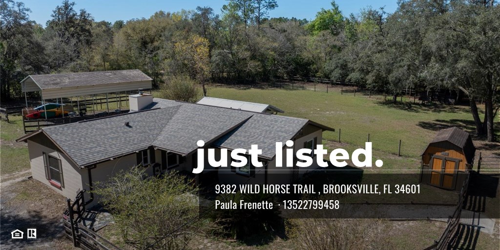 Calling all Equestrians! Do you want to live with the horse trails in your back yard? This property will not disappoint! There is so much to offer with this cozy 3 bedroom, 2 bath home that has been remodeled and well taken care of. The home boasts a brand-new roof, remodeled kitchen in 2010, newly painted inside and out, addition in 2003, 2 zoned HVAC units 2021, new energy efficient double hung windows in 2021. The entire home has ceramic tile LVT and hardwood flooring plus a woodburning fireplace. The primary bath was remodeled in 2019 and has a large walk-in shower, granite counters and its own water heater. The sunroom/family room has nice custom blinds and will open up the back yard with a fenced in dog area. The insulated detached 30X24 two car garage could serve many purposes one half of the garage has AC and vinyl flooring. There are a total of 3 carports, one is a 18X36 for the RV or large horse trailer. The other two are regular size carports for vehicles or equipment. The dream yard is completely fenced and features a gazebo, tool shed, plus an underground storm shelter. Now for the horses! There are two amazing barns, one of them is 36X36 with 5 12X12 stalls, feed/tack room, 12' wide cement center aisle and most have rear doors, one with adjoining paddock. The second Barn is 36X12 with two stalls and extra storage for feed, tack or supplies. These two additional stalls also have attached large paddocks This area would also make a great dog run. There is water to all the barns, a well-established large pasture, paddocks and a handy wash rack. This property really must be seen to be appreciated! The location is close to town with all Brooksville has to offer plus the property is directly bordering the state forest with miles of marked trails for horses, hikers and mountain biking. The Good Neighbor Trail, The Withlacoochee State Trail and The Rails to Trails system are right there! This is an amazing opportunity that you do not want to miss!