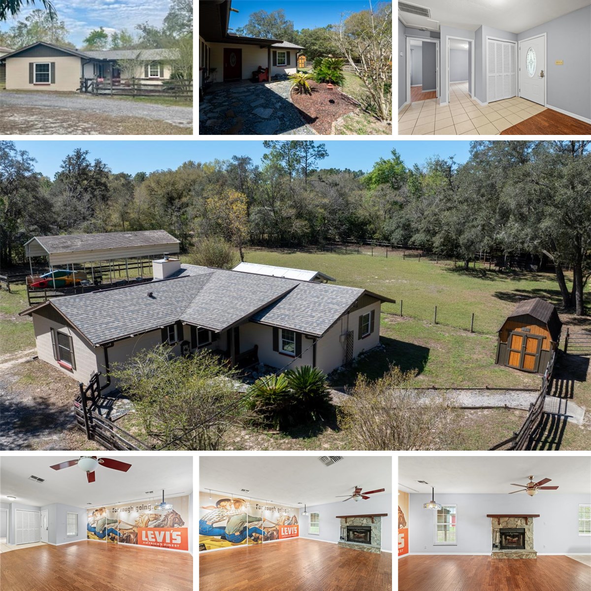 Calling all Equestrians! Do you want to live with the horse trails in your back yard? This property will not disappoint! There is so much to offer with this cozy 3 bedroom, 2 bath home that has been remodeled and well taken care of. The home boasts a brand-new roof, remodeled kitchen in 2010, newly painted inside and out, addition in 2003, 2 zoned HVAC units 2021, new energy efficient double hung windows in 2021. The entire home has ceramic tile LVT and hardwood flooring plus a woodburning fireplace. The primary bath was remodeled in 2019 and has a large walk-in shower, granite counters and its own water heater. The sunroom/family room has nice custom blinds and will open up the back yard with a fenced in dog area. The insulated detached 30X24 two car garage could serve many purposes one half of the garage has AC and vinyl flooring. There are a total of 3 carports, one is a 18X36 for the RV or large horse trailer. The other two are regular size carports for vehicles or equipment. The dream yard is completely fenced and features a gazebo, tool shed, plus an underground storm shelter. Now for the horses! There are two amazing barns, one of them is 36X36 with 5 12X12 stalls, feed/tack room, 12' wide cement center aisle and most have rear doors, one with adjoining paddock. The second Barn is 36X12 with two stalls and extra storage for feed, tack or supplies. These two additional stalls also have attached large paddocks This area would also make a great dog run. There is water to all the barns, a well-established large pasture, paddocks and a handy wash rack. This property really must be seen to be appreciated! The location is close to town with all Brooksville has to offer plus the property is directly bordering the state forest with miles of marked trails for horses, hikers and mountain biking. The Good Neighbor Trail, The Withlacoochee State Trail and The Rails to Trails system are right there! This is an amazing opportunity that you do not want to miss!